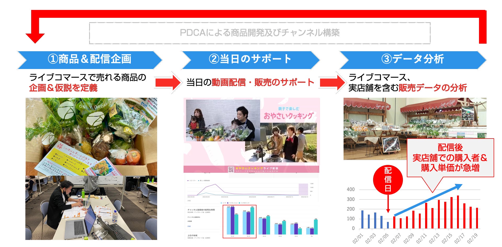 今回の共創事業では、当社が運営するライブコマースプラットフォーム『SharingLive』を活用し、株式会社マルイチの独自戦略であるオーガニック野菜の発掘に取り組みました。